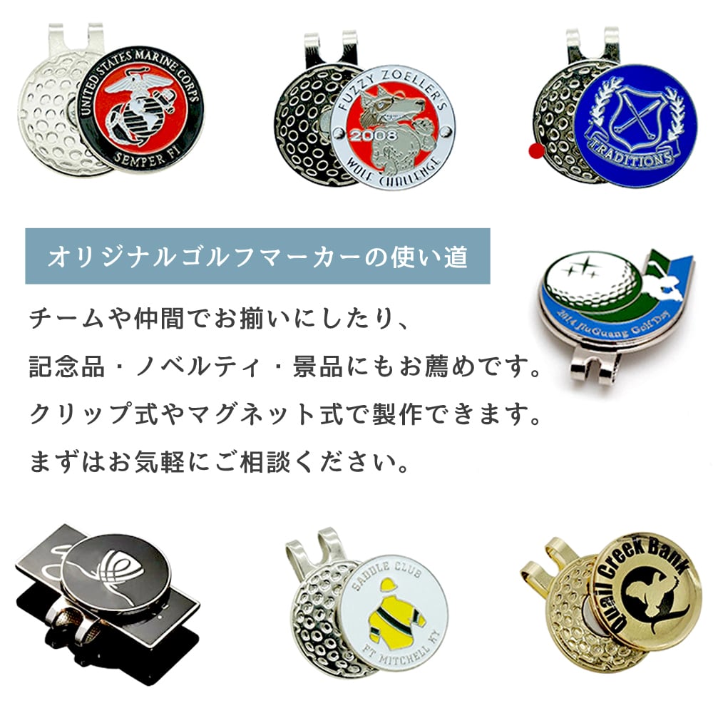 オリジナルゴルフマーカー製作 オーダーメイド 金属製ゴルフマーカー ゴルフコンペ ゴルフ場グッズ サークル チーム 記念品 ノベルティ グッズ ハンドメイド プレゼント オリジナル 小ロットOK 高品質 卸価格 100個~